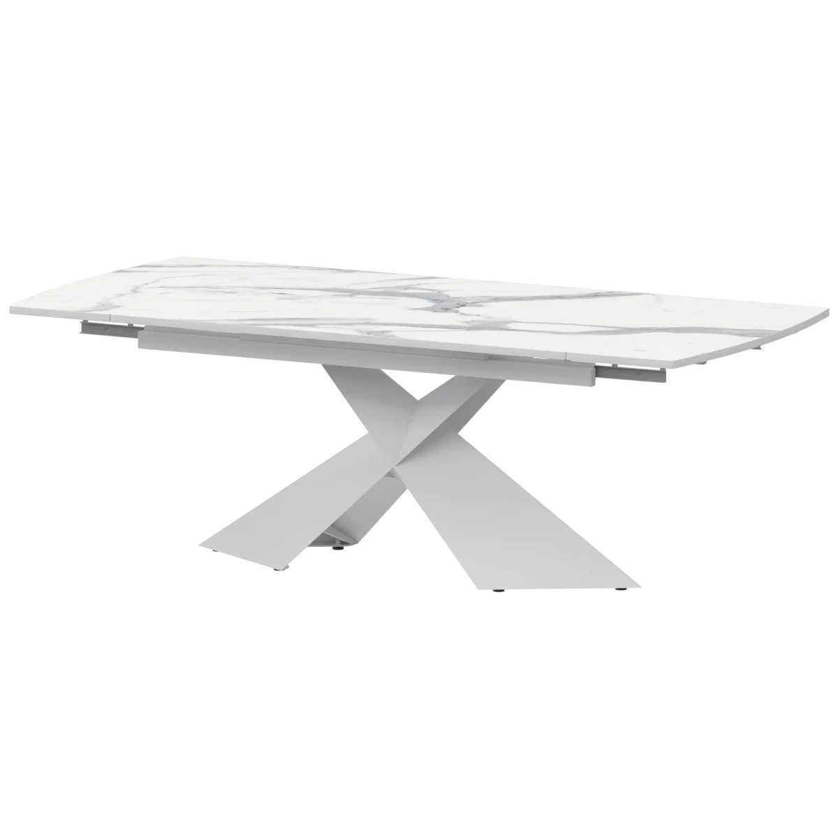 Стол раздвижной Модерн Обеденные столы в пластике Модерн 1400х945+300 (Н-3833) Мрамор Белый/Белый муар