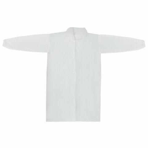 Халат одноразовый белый на кнопках КОМПЛЕКТ 10 шт., XXXL 110 см, резинка, 30 г/м2, ОПТИТРЕЙД