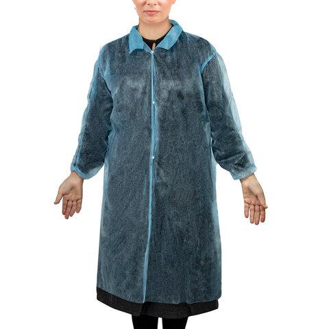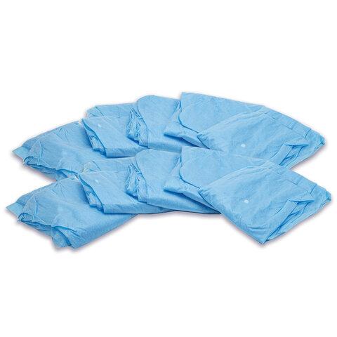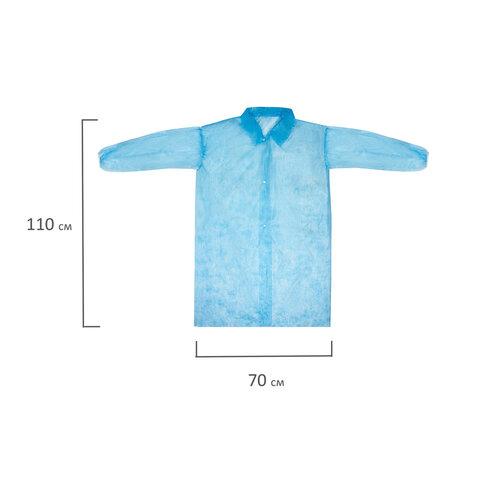 Халат одноразовый голубой на кнопках КОМПЛЕКТ 10 шт, XXL 110 см резинка, 25 г/м2, СНА