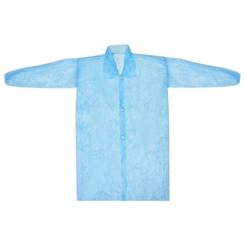 Халат одноразовый голубой на липучке КОМПЛЕКТ 10 шт, XXL, 110 см, резинка, 20 г/м2 СН