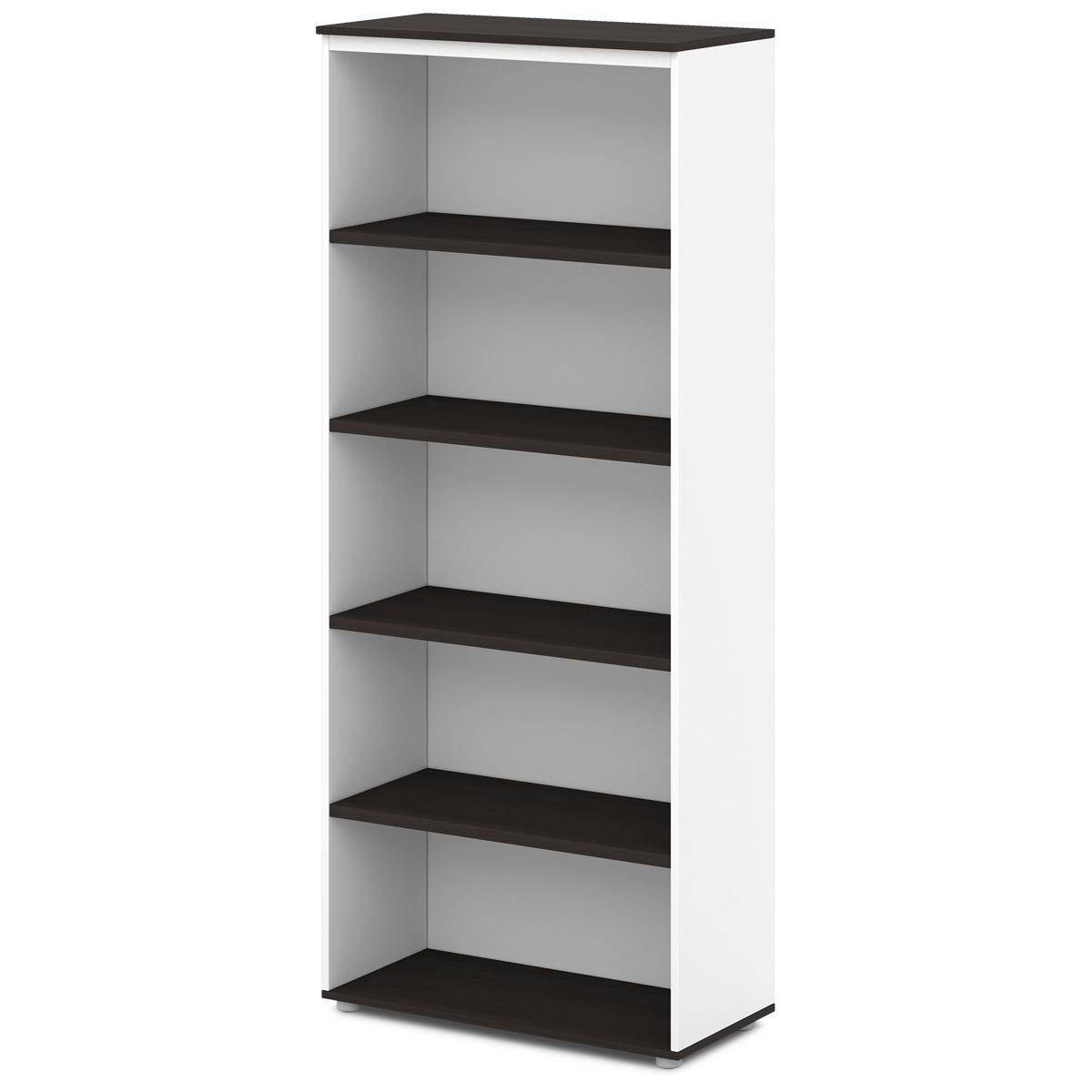 Стеллаж с пятью полками. Верх, низ, бока изготовлены из ЛДСП 16 мм. Верх стеллажа комбинированный 48 мм, с декоративным элементом цвета «Металлик», оклеен противоударной кромкой ABS 2 и кромкой ABS 0,4 мм. Задняя стенка изготовлена из ЛДСП 10 мм. Горизонтали, полки изготовлены из ЛДСП 25 мм и оклеены противоударной кромкой ABS 2 и кромкой ABS 0,4 мм. Двери оснащены механизмом плавного закрывания. Опоры стеллажа снабжены компенсатором неровности пола. Все соединительные элементы оснащены фурнитурой для многократной сборки и разборки изделия. Используется фурнитура ведущих европейских производителей.