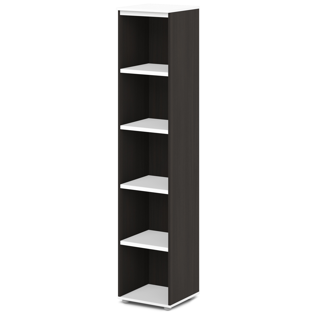 Стеллаж офисный высокий узкий с пятью полками.