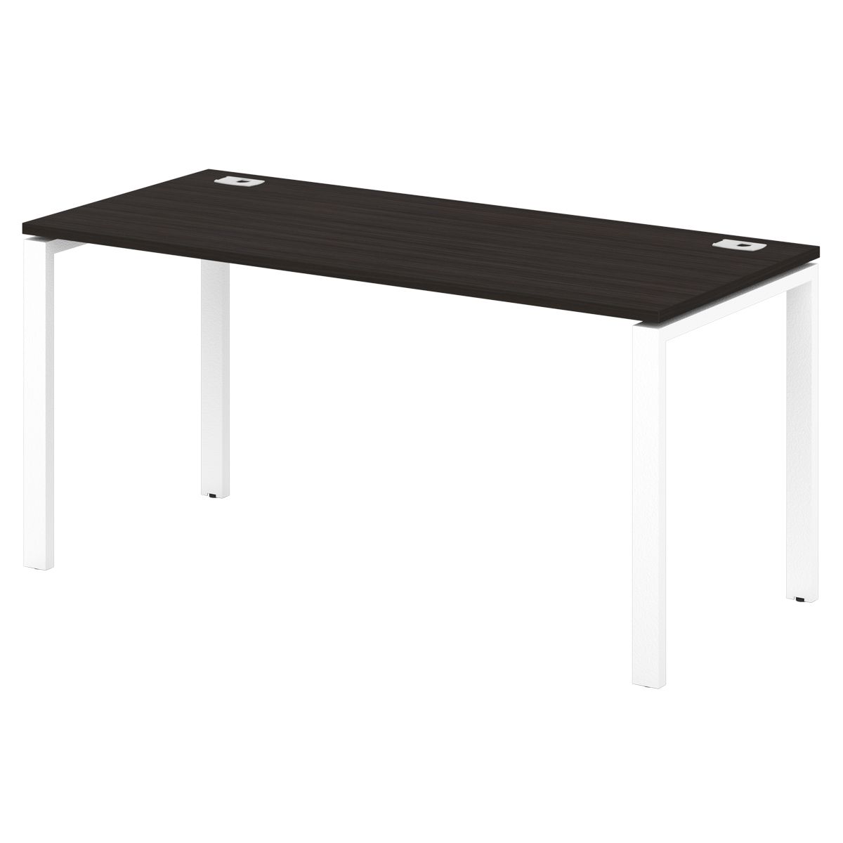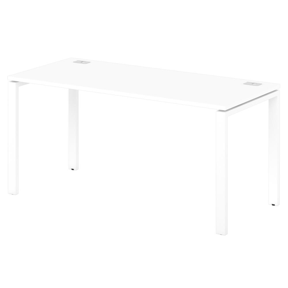 Офисный стол одиночный на металлокаркасе с 2-мя заглушками кабель-канала. Сечение трубы 60х30 мм. Базовый цвет металлокаркаса - "белый" (возможно исполнение в цветах: "серый", "антрацит"). Возможность установки экранов.