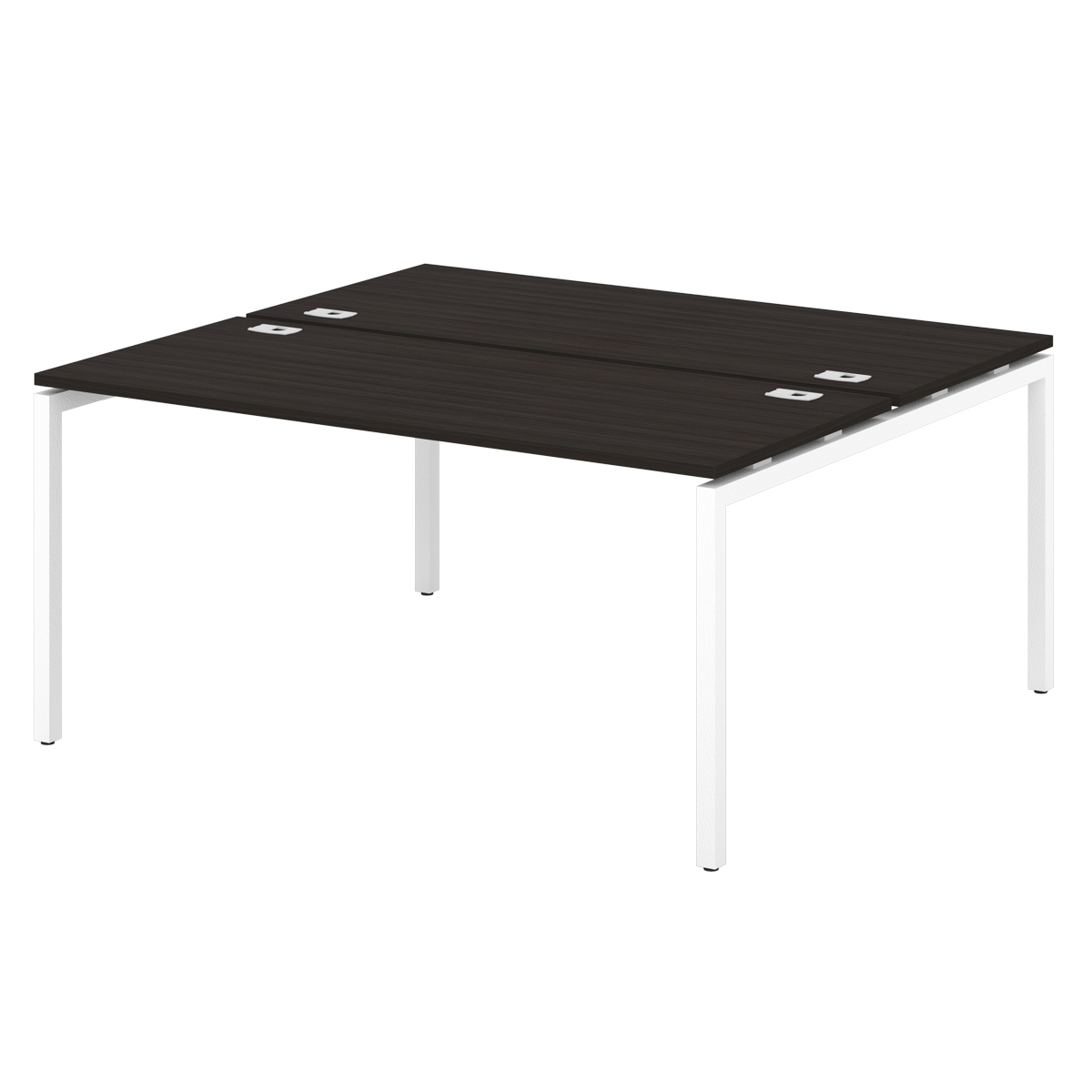 Бенч на два рабочих места на Металлокаркасе. Столешницы изготовлены из ЛДСП 25 мм и оклеены противоударной кромкой ABS 2 мм. Металлокаркас представляют собой разборную, легкособираемую конструкцию, состоящую из опор и соединителей, стянутых между собой крепежными узлами. Опоры оборудованы регулировочными ножками, с возможностью регулировки по высоте. Металлокаркасы изготавливаются сечением 40х40 и окрашены порошковой краской в белый или серый цвет. В столешницах установлены по два кабель-канала и лоток сетчатый для проводов. Все соединительные элементы оснащены фурнитурой для многократной сборки и разборки изделия.