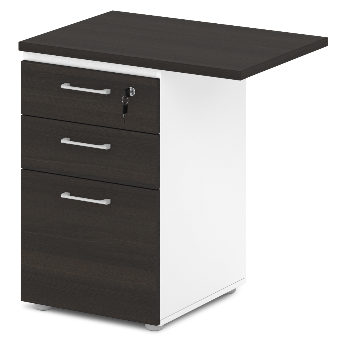 Тумба приставная с увеличенным топом, файловым ящиком и замком на первый ящик. Оборудована шариковыми направляющими скрытого монтажа с механизмом самозадвижения.