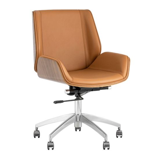 Современное и функциональное офисное кресло. Дизайнерская форма добавит помещению уюта и стиля, а вставки, декорированные под натуральное дерево, выглядят очень изысканно.