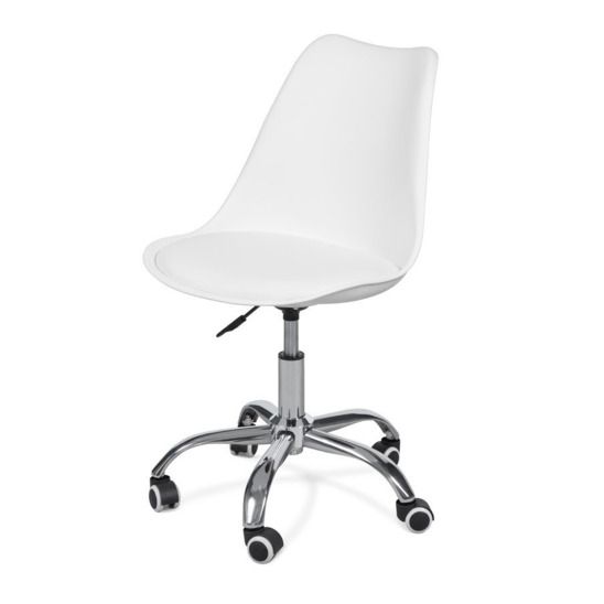 Эталон офисного и домашнего стиля. На литом пластиковом сиденье удобная противоскользящая, мягкая подкладка из экокожи. Крестообразная хромированная металлическая опора с прорезиненными колесами для защиты пола от повреждения. Кресло оборудовано механизмом регулировки высоты.