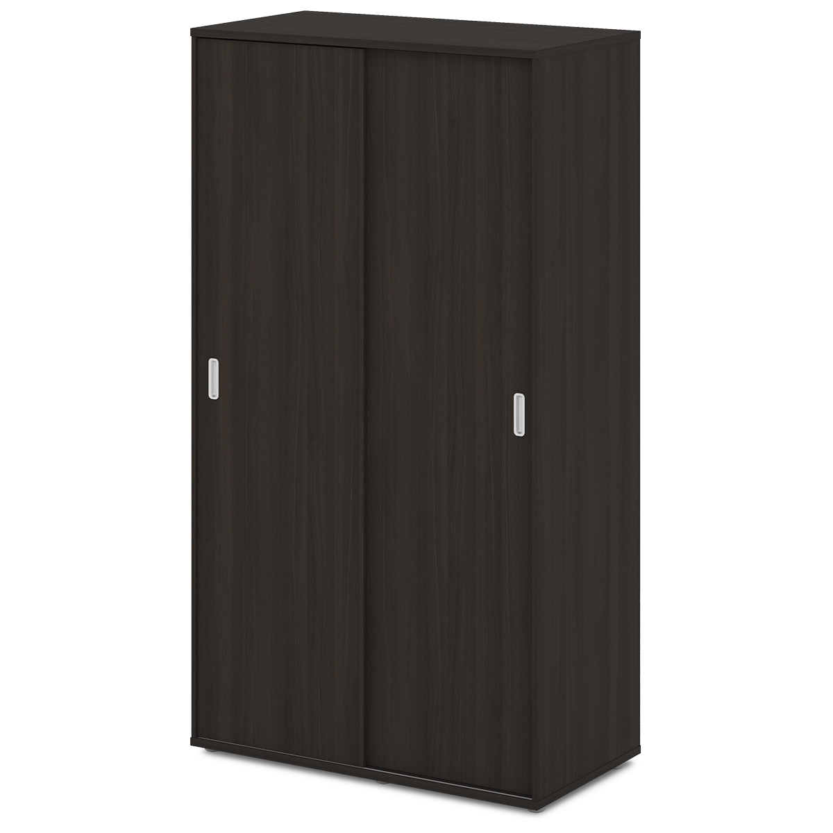 Шкаф разделен перегородкой на 2 отсека. Первый имеет три регулируемые по высоте полки, и две горизонтали для жесткости каркаса. Второй отсек имеет продольную овальную штангу закрепленную между боками шкафа, цвет штанги хром, а так же полку для головных уборов, и дополнительную регулируемую по высоте полку для обуви. Верх, низ, перегородка и полки изготовлены из ЛДСП 25 мм и оклеены противоударной кромкой ABS 0,4 мм и 2 мм. Бока изготовлены из ЛДСП 16 мм и облицованы кромкой ABS 2 мм и 0,4 мм в цвет плиты. Задняя стенка изготовлена из ЛДСП 16 мм. Двери изготовлены из ЛДСП 16 мм и облицованы кромкой ABS 0,4 мм в цвет плиты. Двери установлены на раздвижную систему SlideLine европейского производства. Ручка – врезная, материал - цинковое литье, цвет хром матовый.