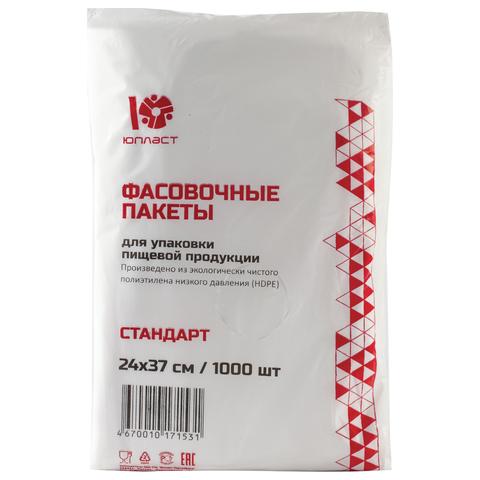 Пакеты фасовочные КОМПЛЕКТ 1000 шт., 24х37 см, ПНД, 7 мкм, ЭКОНОМ, ЮПЛАСТ, евроупаковка, ЮФАС0001