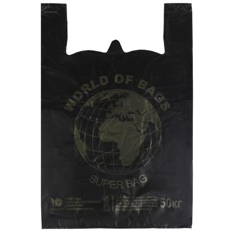 Пакеты "майка", КОМПЛЕКТ 100 шт., 43+20х65 см, ПНД, "World", 30 мкм, ЧЕРНЫЕ, ЮПЛАСТ, ЮМАЙ1071