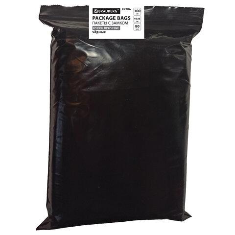 Пакеты ZIP-LOCK ОЧЕНЬ ПРОЧНЫЕ, комплект 100 шт., 100x150 мм, ПВД, 80 мкм., ЧЁРНЫЕ, BRAUBERG, 608932