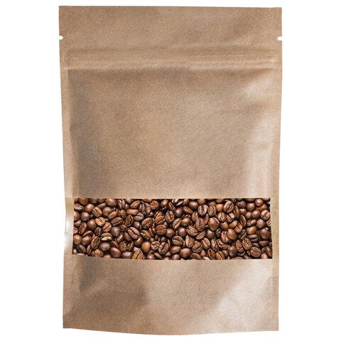 Пакеты дой-пак с замком ZIP LOCK, крафт с окном 40 мм, 100х150 + 30 мм, КОМПЛЕКТ 100 штук, 150 мкм, BRAUBERG, 700688