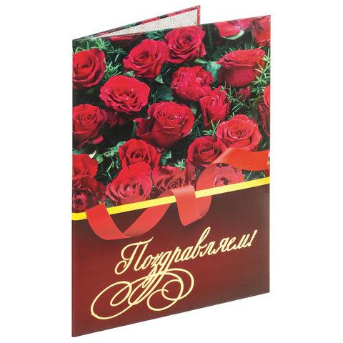 Папка адресная ламинированная "ПОЗДРАВЛЯЕМ!", формат А4, розы, индивидуальная упаковка, STAFF "Profit", 129585