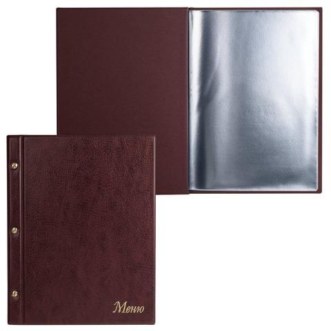 Папка "Меню" на трех винтах, с 10 файлами, 220х320 мм, коричневая, "ДПС", 2273.М-104