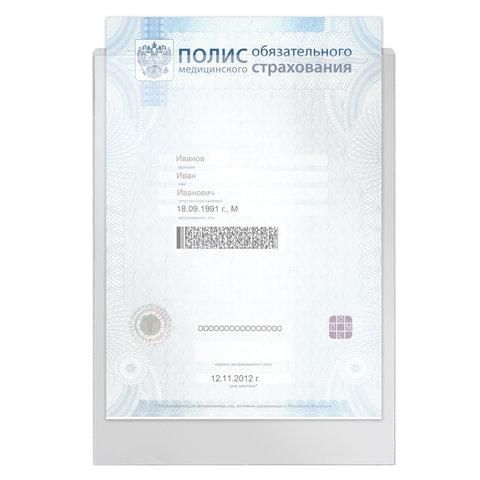Папка-файл для медицинского полиса, 223х158 мм, без отверстий, ПВХ 120 мкм, "ДПС", 3127