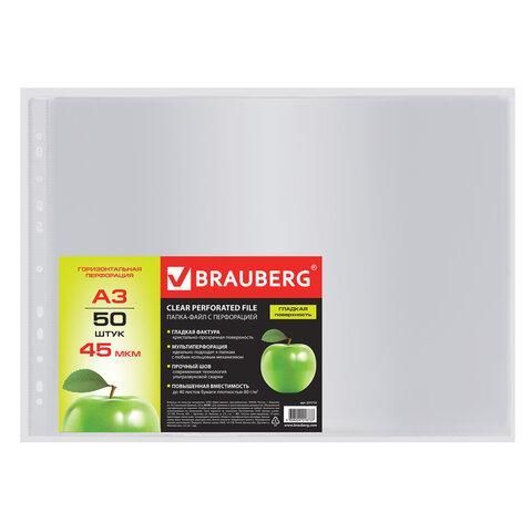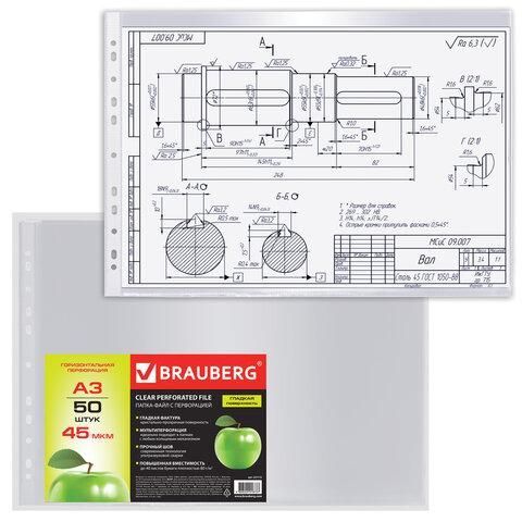 Папки-файлы БОЛЬШОГО ФОРМАТА (297х420 мм), А3, ГОРИЗОНТАЛЬНЫЕ, КОМПЛЕКТ 50 шт., 45 мкм, BRAUBERG, 221715