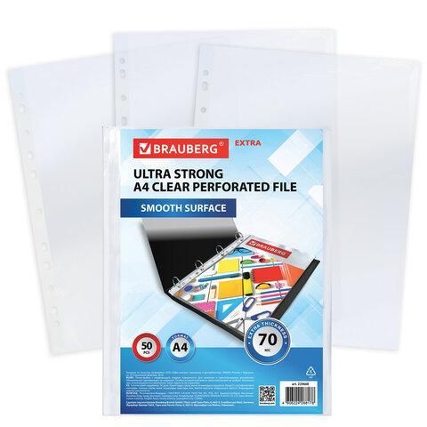 Папки-файлы перфорированные А4 BRAUBERG "EXTRA 700", КОМПЛЕКТ 50 шт., гладкие, ПЛОТНЫЕ, 70 мкм, 229668