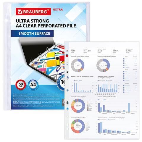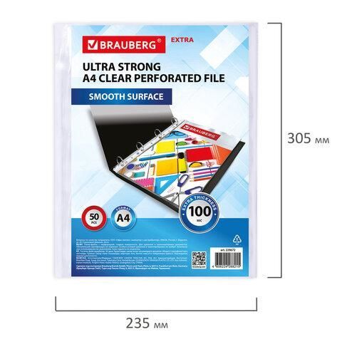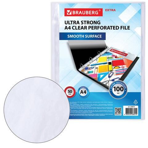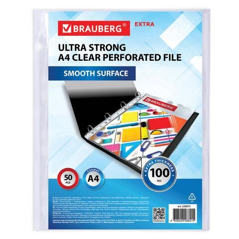 Папки-файлы перфорированные А4 BRAUBERG "EXTRA 1000", КОМПЛЕКТ 50 шт., гладкие, 100 мкм, 229672