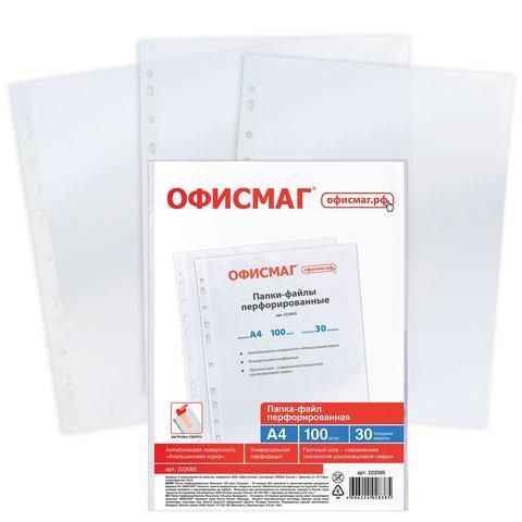 Папки-файлы перфорированные А4 ОФИСМАГ, КОМПЛЕКТ 100 шт., матовые, 30 мкм, 222095