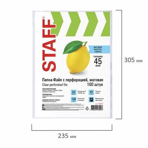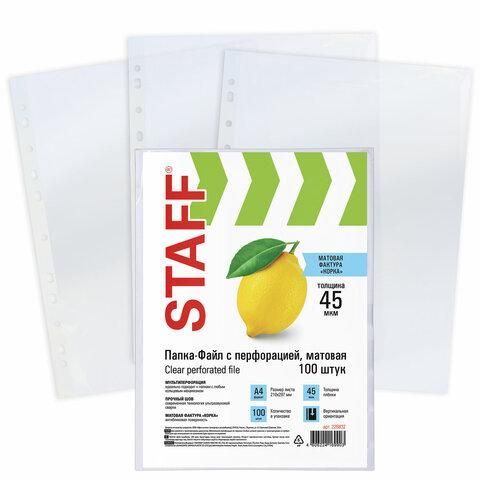 Папки-файлы перфорированные, А4, STAFF, комплект 100 шт., матовые, 45 мкм, 226832