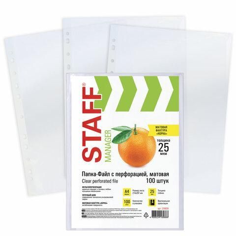 Папки-файлы перфорированные ЭКОНОМ, А4, STAFF, комплект 100 шт., матовые, 25 мкм, 226828