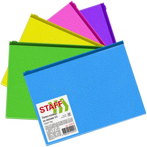 Папка-конверт на молнии А4 (230х333 мм), ПВХ, цвет ассорти с блестками, 0,15 мм, STAFF, 274079