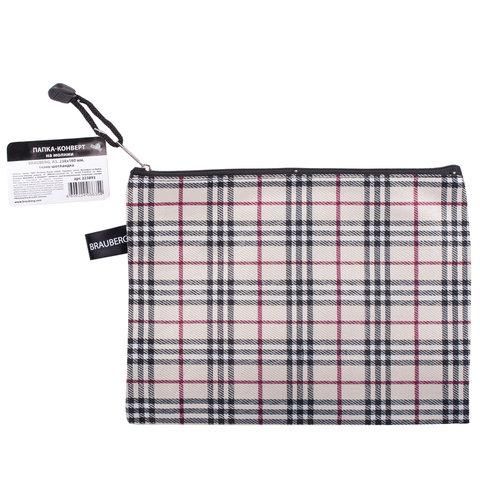 Папка-конверт на молнии МАЛОГО ФОРМАТА (238х180 мм), А5, ткань в клетку, BRAUBERG "Checked", 223893