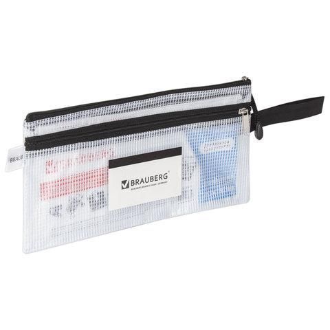 Папка-конверт на молнии BRAUBERG "Solid" идеально подойдет для хранения и транспортировки документов.Изготовлена из прочного прозрачного пластика толщиной 0,3 мм с сетчатой фактурой и имеет 2 отделения. Размер - 255х130 мм. Герметичная застежка-молния защищает документы от механических повреждений, а также пыли и влаги. Цвет молнии - черный.