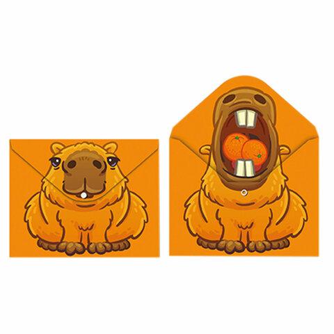 Папка-конверт с двухсторонней печатью и кнопкой "Капибара", А4, 180 мкм, CNT, 74964