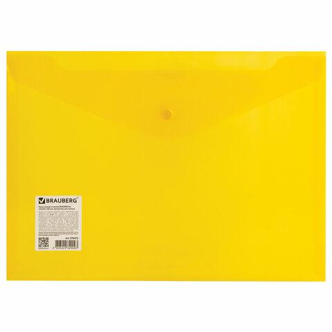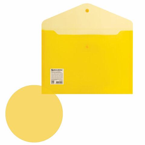 Папка-конверт с кнопкой BRAUBERG А4 до 100 л. прозрачная желтая СВЕРХПРОЧНАЯ 0,18 мм, 270472