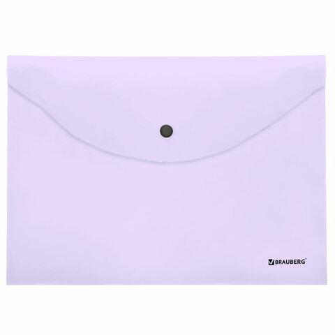 Папка-конверт с кнопкой BRAUBERG "Pastel", А4, до 100 листов, непрозрачная, лиловая, 0,18 мм, 270475