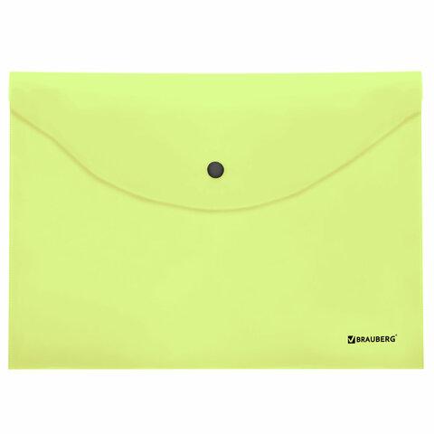 Папка-конверт с кнопкой BRAUBERG "Pastel", А4, до 100 листов, непрозрачная, мятная, 0,18 мм, 270477