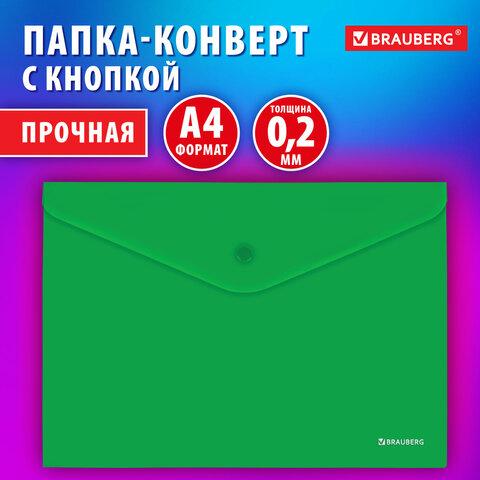 Папка-конверт с кнопкой BRAUBERG "SUPER", А4, матовая непрозрачная, зеленая, ПРОЧНАЯ 0,2 мм, 272877