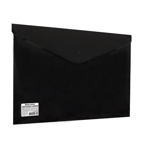 Папка-конверт с кнопкой BRAUBERG, А4, до 100 листов, непрозрачная, черная, СВЕРХПРОЧНАЯ 0,2 мм, 221361