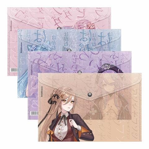 Папка-конверт с кнопкой ERICH KRAUSE "Manga Girls", А4, до 120 л., ассорти, 0,18 мм, 61156