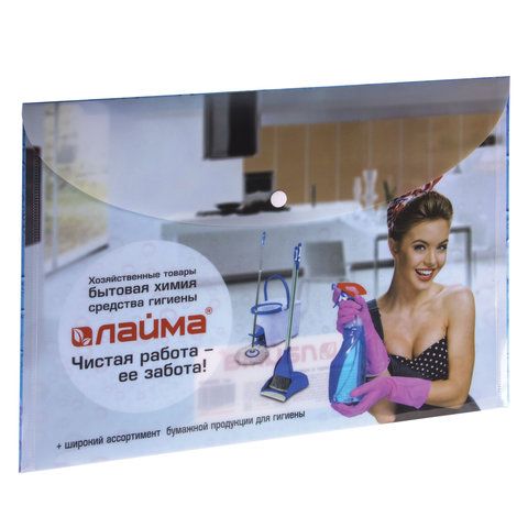Папка с кнопкой ЛАЙМА - универсальная модель для хранения и транспортировки документов. Станет незаменимым предметом для школьников, студентов, офисных работников и занятых деловых и творческих людей.Папка-конверт с кнопкой ЛАЙМА - надежный защитник от природного и механического характера воздействия повреждений. Папка-конверт формата А4 из плотного пластика в 160 мкм с полноцветной печатью. Закрывается на защелку-кнопку, что способствует удобству для частого использования и обеспечивает быстрый доступ к бумагам. Вместительность до 100 листов поможет хранить или взять с собой необходимые документы. Гладкая фактура с полноцветным рисунком продукции бренда хозяйственно-бытового назначения всегда создаст рабочую атмосферу. Отличное качество и привлекательная стоимость - те исключительные качества, которые гарантирует торговая марка ЛАЙМА. Важные документы и ценные бумаги требуют всегда повышенного внимания и деликатного обращения с ними. Безопасность и опрятный их внешний вид обеспечит папка-конверт с кнопкой ЛАЙМА, которую без труда можно приобрести в нашем интернет-магазине.