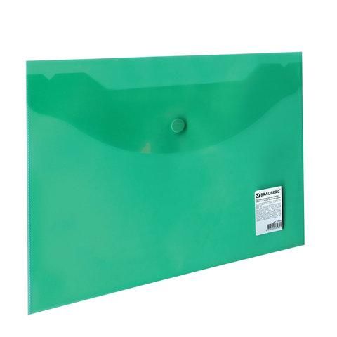 Папка-конверт с кнопкой МАЛОГО ФОРМАТА (240х190 мм), А5, прозрачная, зеленая, 0,18 мм, BRAUBERG, 224025