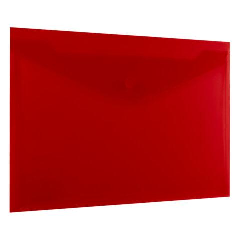 Папка-конверт с кнопкой прозрачная А4, BRAUBERG "UNIVERSAL", до 100 листов, красная, 0,15 мм, 273073