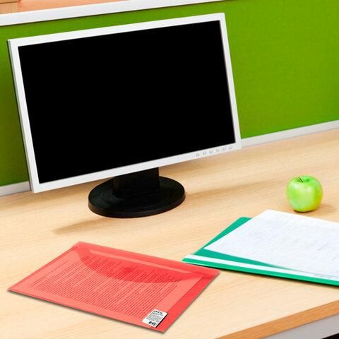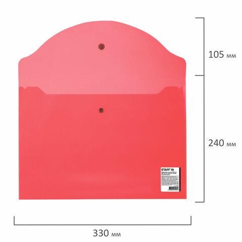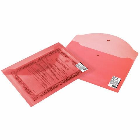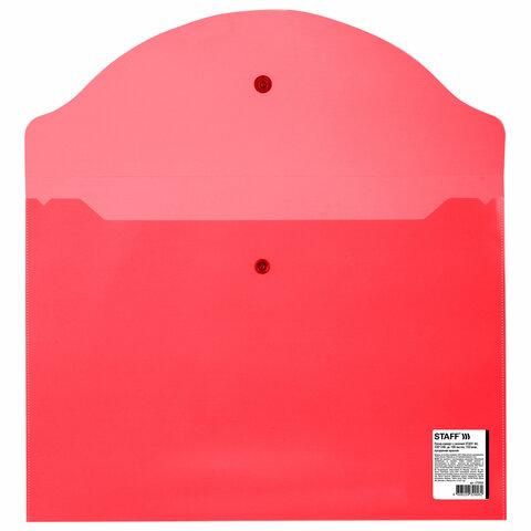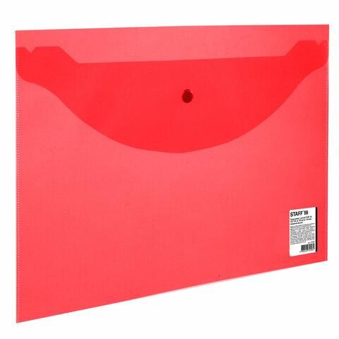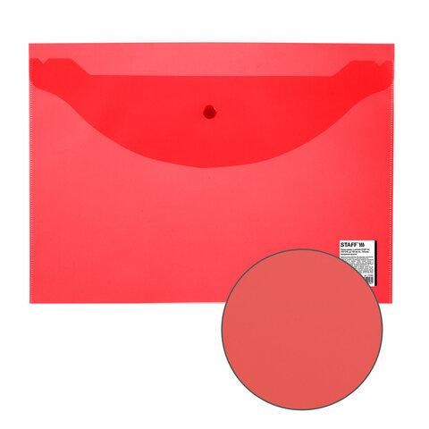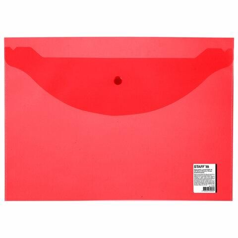 Папка-конверт с кнопкой STAFF, А4, до 100 листов, прозрачная, красная, 0,15 мм, 270469