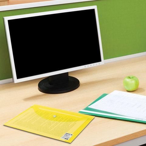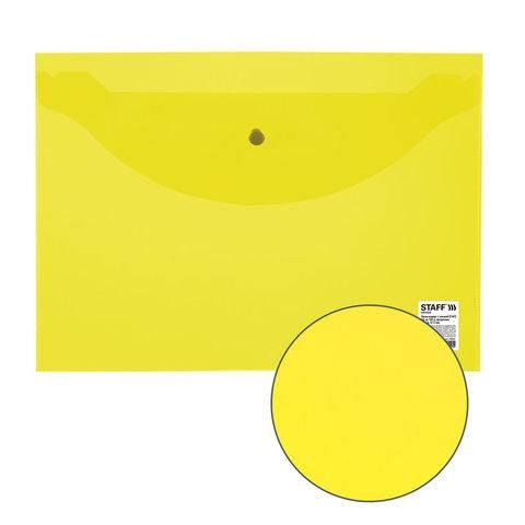 Папка-конверт с кнопкой STAFF, А4, до 100 листов, прозрачная, желтая, 0,12 мм, 226031
