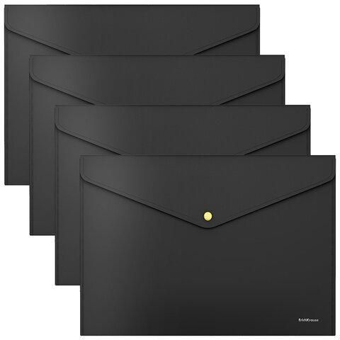 Папка-конверт с неоновой кнопкой ERICH KRAUSE, А4, до 120 листов, матовая черная, 0,18 мм, 55883