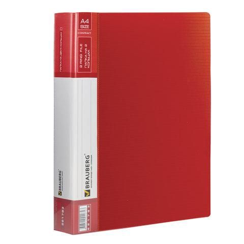 Папка на 2 кольцах BRAUBERG "Contract", 35 мм, красная, до 270 листов, 0,9 мм, 221793