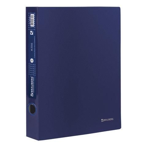 Папка на 4 кольцах BRAUBERG "Диагональ", 40 мм, темно-синяя, до 300 листов, 0,9 мм, 221350