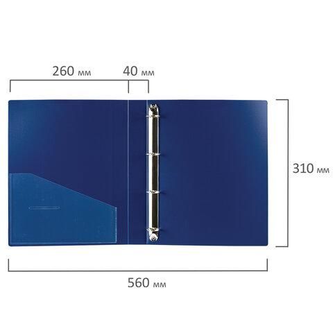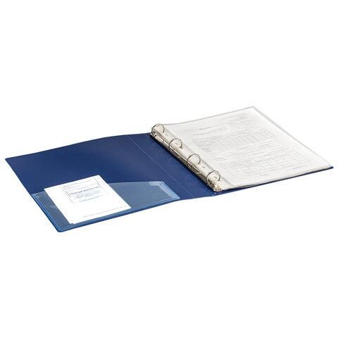 Папка на кольцах BRAUBERG "EXTRA" предназначена для временного или длительного хранения, систематизации, архивирования документов. Такие папки используются в работе офисными сотрудниками различных специальностей, направлений, должностей.Папка стандартного формата А4 вмещает до 300 листов. Изготовлена из высококачественного пластика толщиной 0,8 мм синего цвета со стандартной фактурой. Допускается влажная обработка поверхности. Внутренняя сторона обложки снабжена прозрачным карманом. Для идентификации содержимого на корешке папки имеется карман. Ширина корешка составляет 40 мм. Папка оснащена четырьмя кольцами, которые обеспечивают надежное хранение документов. В неё можно вставлять файлы или проколотые дыроколом листы и, при необходимости, заменять их на другие. Каждая папка упакована в индивидуальный пакет.