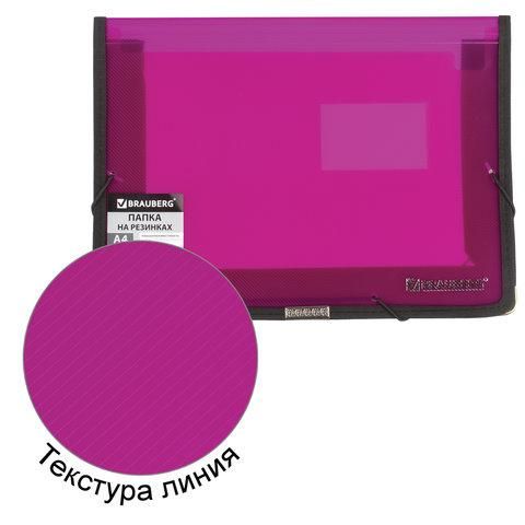 Папка на резинках BRAUBERG предназначена для защиты документов от повреждений. Такие папки широко применяются не только в офисах, деловой жизни, но и в быту для хранения личной документации, учебных материалов.Папка на резинках формата А4 изготовлена из полупрозрачного пластика с диагональной фактурой плотностью 600 мкм и тканевой окантовкой. Клапаны надежно удерживают документы внутри, не позволяя им выпасть и потеряться, а резинки, расположенные на углах, плотно закрывают папку. Резинки являются надежными фиксирующими элементами. Их прочность позволяет сохранять качество после огромного количества растяжений. Эти фиксаторы позволяют за несколько секунд достать и уложить нужный документ. Папка способна вмещать до 500 листов стандартной плотности, что делает ее универсальной как для транспортировки, так и для долгосрочного хранения документов.