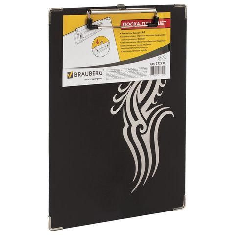 Доска-планшет BRAUBERG "Black Jack" с прижимом А4 (226х315 мм), картон/ламинированная бумага, ЧЕРНАЯ, 232236