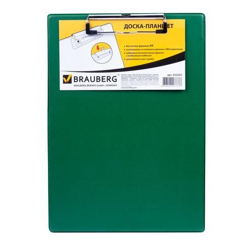 Доска-планшет BRAUBERG "NUMBER ONE" с прижимом А4 (228х318 мм), картон/ПВХ, ЗЕЛЕНАЯ, 232222