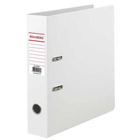 Папка-регистратор BRAUBERG с двухсторонним покрытием из ПВХ, 70 мм, белая, 222651