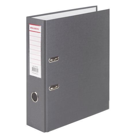 Папка-регистратор BRAUBERG с покрытием из ПВХ, 80 мм, с уголком, серая (удвоенный срок службы), 227190