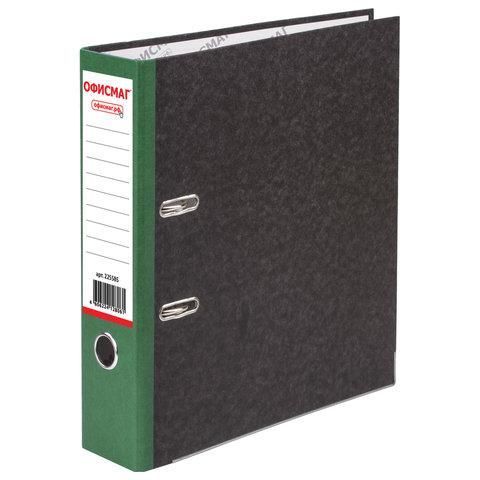 Папка-регистратор ОФИСМАГ, фактура стандарт, с мраморным покрытием, 75 мм, зеленый корешок, 225585